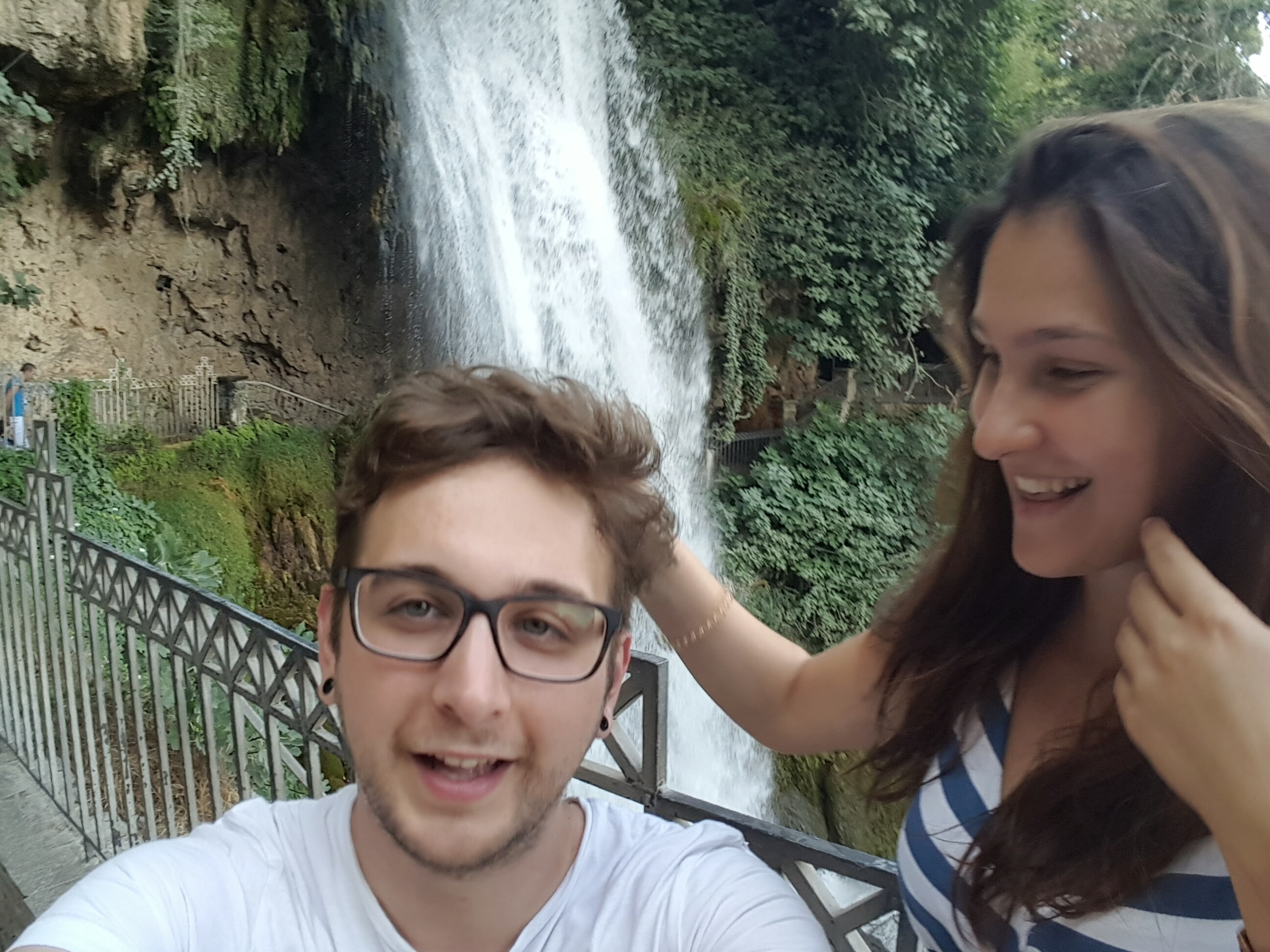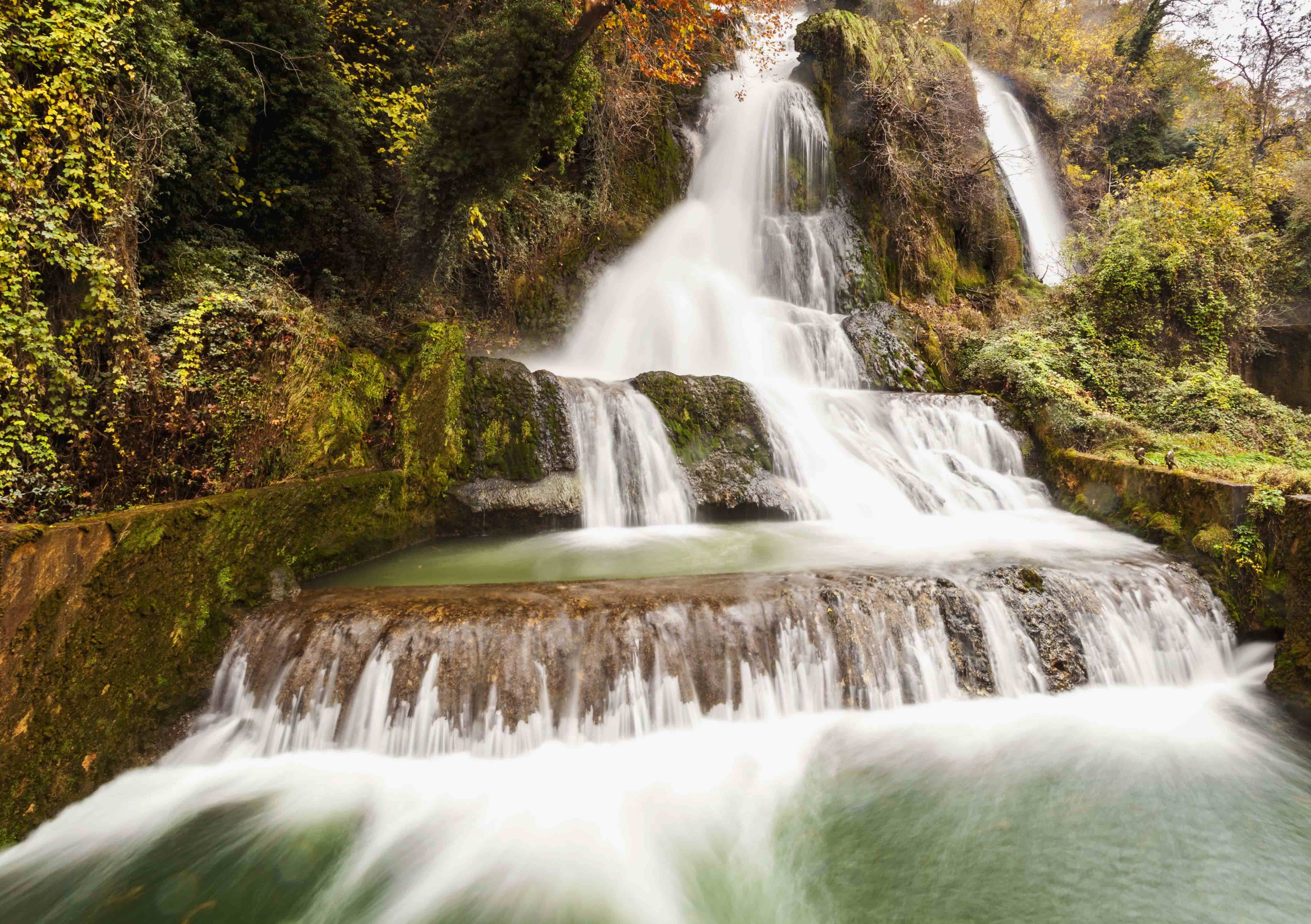 Karanos-Wasserfall. Rundherum führen kleine Wege und Stege durch grüne Schluchten, vorbei an Aussichtspunkten und Gischtnebeln. In der Nähe liegt das